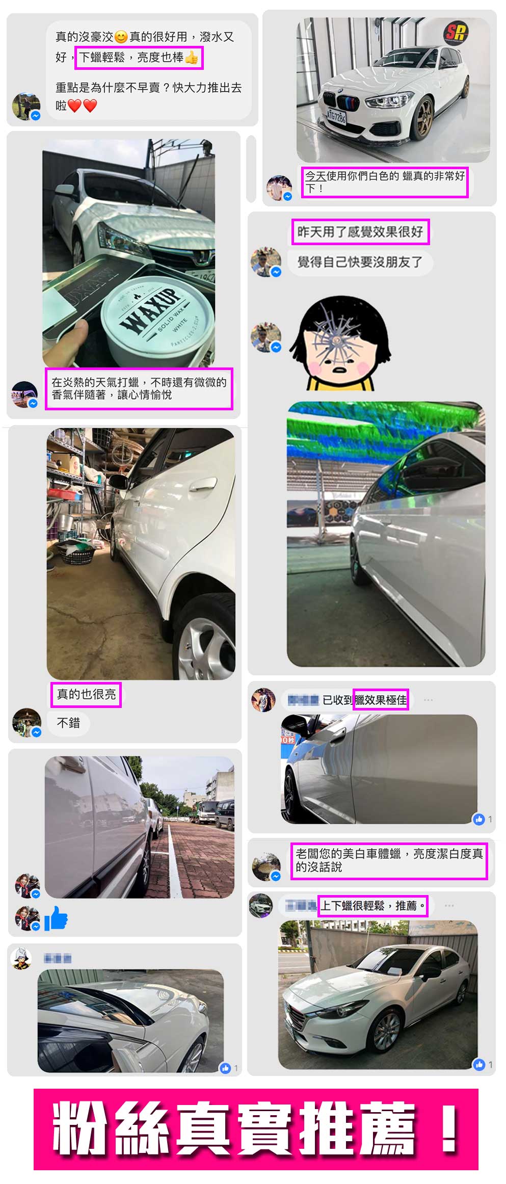 美白蠟含1.6微米的研磨粒,測試過不會傷車漆,但鍍膜車不建議使用。